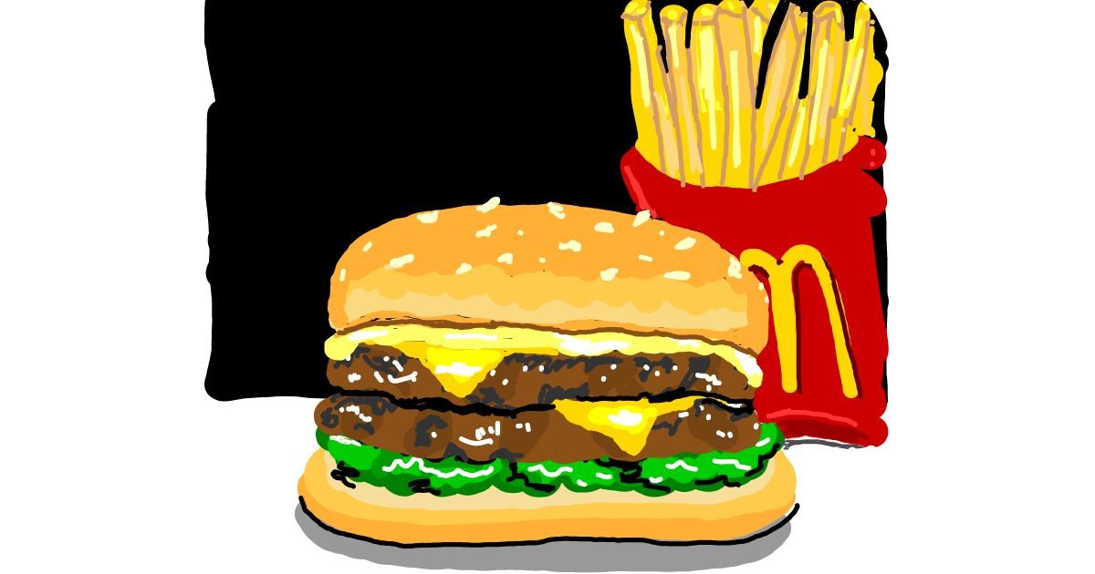 French Fries With Hamburger Drawing K55481353 Fotosearch